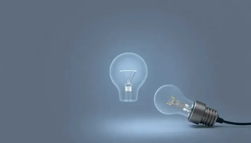Bombillas incandescentes apagadas sobre fondo gris representando información sobre tarifas eléctricas
